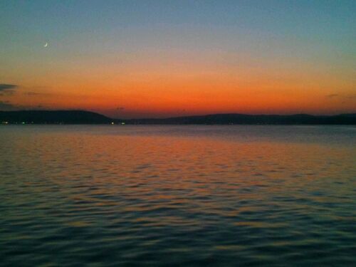 和倉温泉の「多田屋」さんからの夕映えです。 http://tadaya.net/ 街から少し離れた位置にあって、唯一、夕日が臨めます。 身動きもできない美しさでした。 爪のような三日月。 そして翌朝。多田屋さんは「水が近い宿」。 「利久」という棟がおすすめです。 …