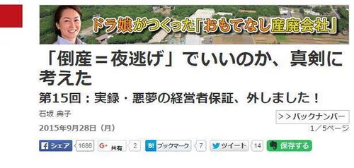 こんにちは。経営ジャーナリスト・中小企業診断士の瀬戸川礼子です。 中小企業の経営者にとって、 既成事実となっている個人保証。 石坂産業社長の石坂典子さんも、会社の負債を個人保証していました。 しかし、今夏、個人保証をすべて外すことができたとい…