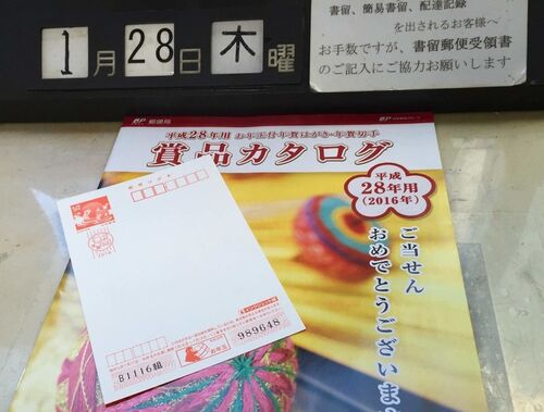 年賀状のお年玉当選番号、確認されましたか? http://yubin-nenga.jp/otoshidama/ 毎年、3等の記念切手を楽しみにチェックするのですが、 2等のふるさと小包に今年初めて当選してしまいました。 近くの郵便局にて。その場で選びます。 それも、送っていた…