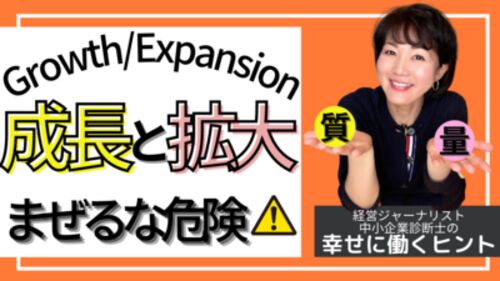 こんにちは。 経営ジャーナリスト・中小企業診断士の瀬戸川礼子です。 youtube【幸せに働き生きるヒント】 35回目のテーマは 「成長と拡大まぜるな危険!」です。 こちらからどうぞ 成長は質。 拡大は量。 聴けば「そうだな」と思うことですが、 普段はこれ…