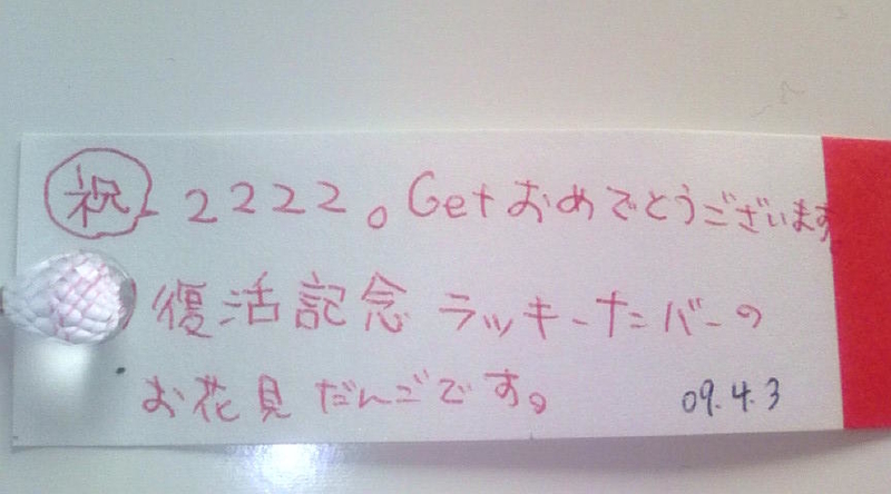 ちょうど2222枚目を担当した私に、