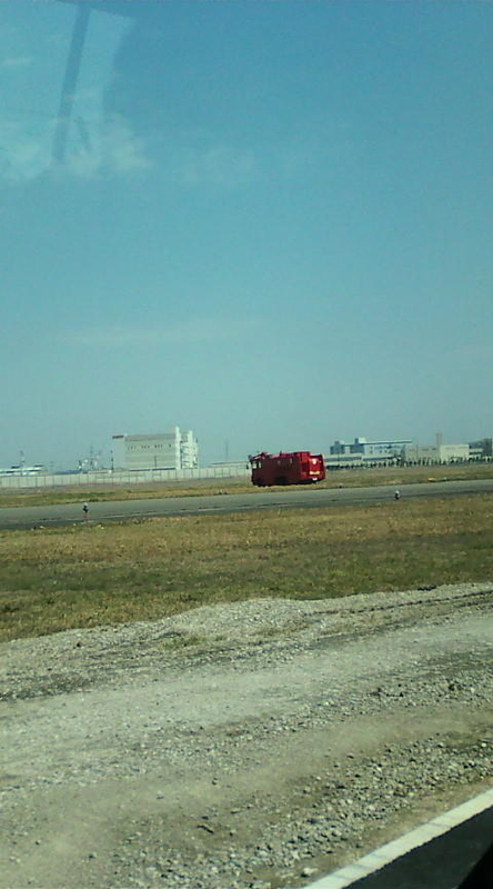 空港の敷地にポツンと駐車する赤い消防車は廃棄車ではありません。