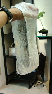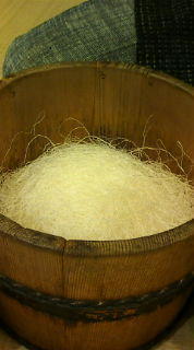 巻きつけている真綿を手でぎゅっと均等に伸ばし、