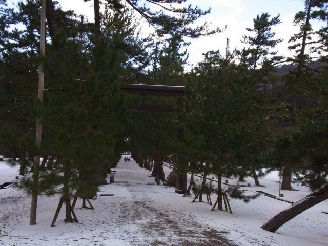雪の参道を歩きます。