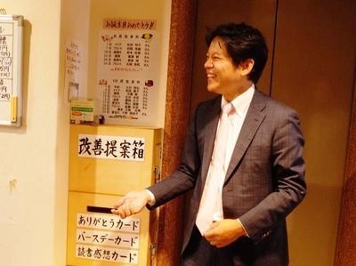 橋本さんとバックヤードに置かれている提案箱など。ちゃんと活用されています。